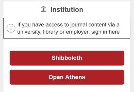 Again, look out for any links which identify as Open Athens or Institutional Login.