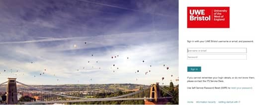 You will normally authenticate (log in) with your UWE Bristol username and password via a sign-in screen – it might look like this.